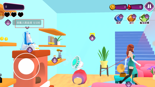 2、在房間場(chǎng)景中,利用操作方式移動(dòng)蚊子,躲避風(fēng)扇等障礙,靠近人類,準(zhǔn)備采集血液。