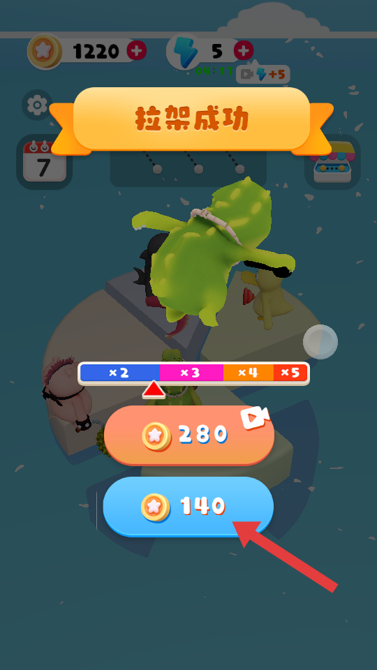 4、成功分開沖突角色,顯示【拉架成功】后,點擊下方藍色按鈕領取獎勵,然后挑戰(zhàn)后續(xù)關卡。