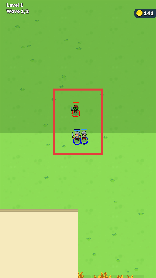 2、戰(zhàn)斗時,操控己方士兵與紅框內(nèi)的綠色敵人交戰(zhàn),合理安排士兵站位,保證戰(zhàn)斗勝利。