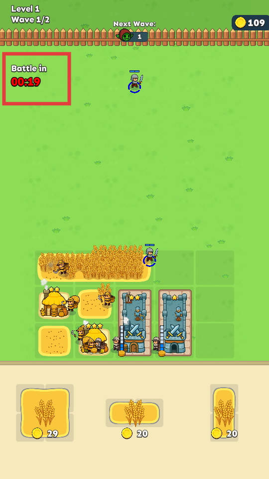 2、建筑種類豐富多樣,從基礎(chǔ)的麥田到高級的兵營,每個建筑都有獨特功能,搭配起來變化無窮。