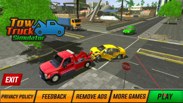 1、進(jìn)入游戲界面,點(diǎn)擊綠色【PLAY】按鈕開(kāi)始游戲,可先熟悉救援拖車(chē)的基本操作場(chǎng)景,準(zhǔn)備執(zhí)行救援任務(wù)。