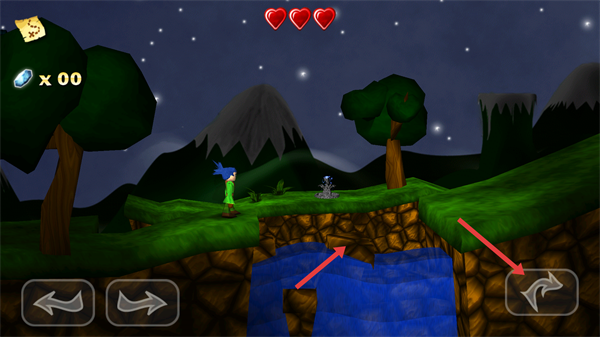 3、在游戲場景中,點(diǎn)擊右側(cè)跳躍按鈕,操控角色躍過河流,向目標(biāo)區(qū)域前進(jìn)。