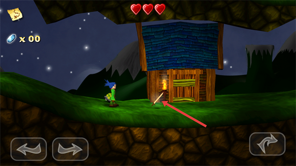4、操控角色到達(dá)木屋前,靠近火把旁的劍,即可獲取該武器,為后續(xù)冒險(xiǎn)做準(zhǔn)備。