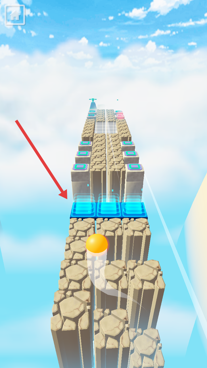 3、持續(xù)躲避障礙物和攻擊,利用藍色平臺輔助移動,確保小球安全前進。