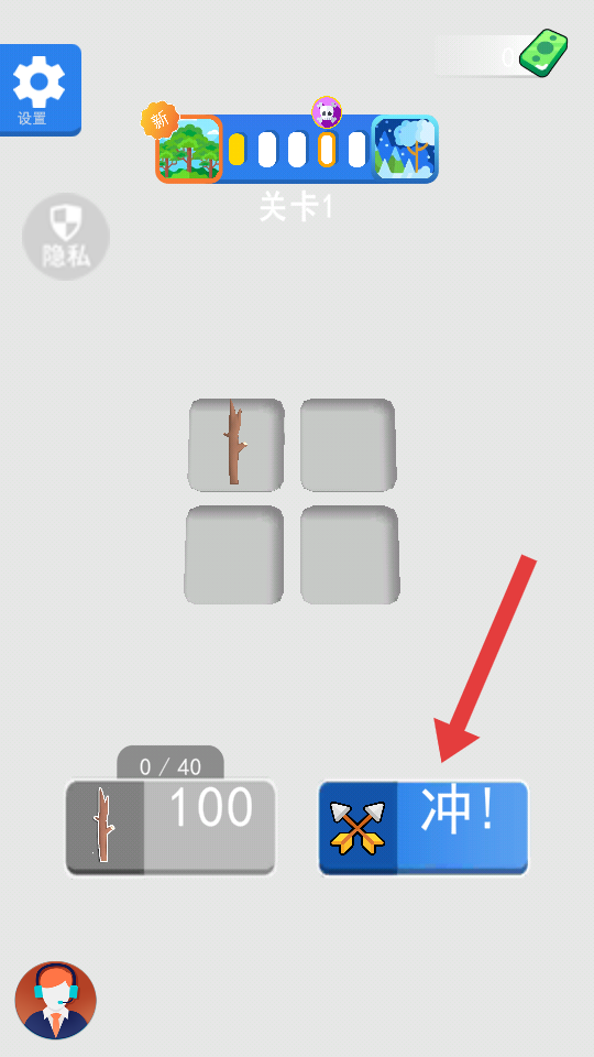 1、在關卡選擇界面,點擊【沖!】按鈕進入射擊關卡。