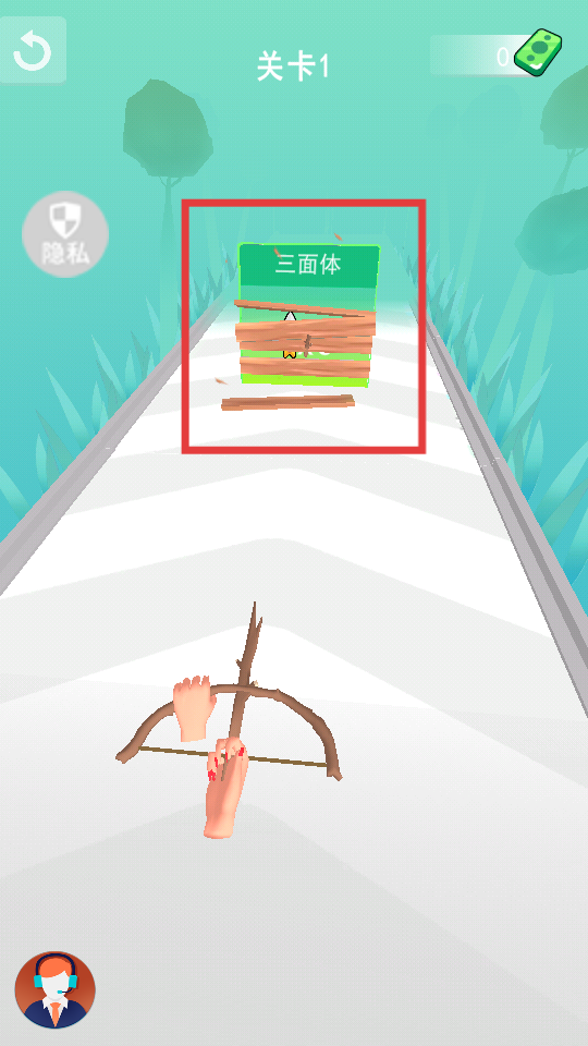 2、進入關卡后,【長按屏幕】操控弓箭射擊紅框內(nèi)的目標,如“三面體”等障礙物,清除路徑上的阻礙。