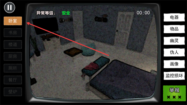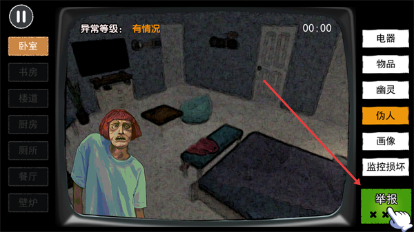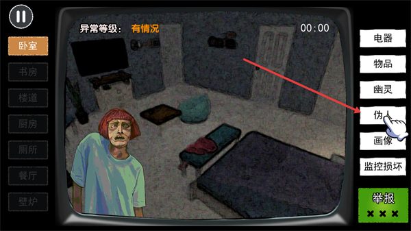 2、當(dāng)臥室異常等級變?yōu)椤居星闆r】且出現(xiàn)可疑人物時,在右側(cè)選項中點擊【偽人】。