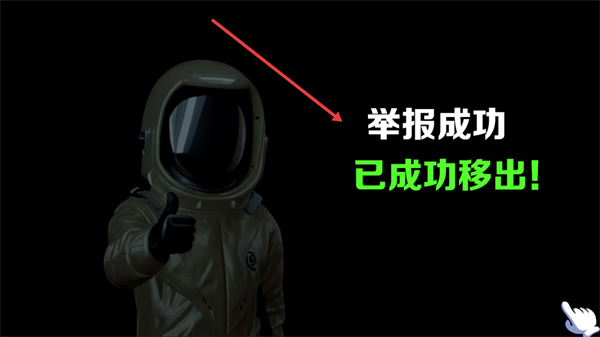 4、完成舉報操作后,會出現(xiàn)【舉報成功已成功移出!】的提示,表明操作成功。