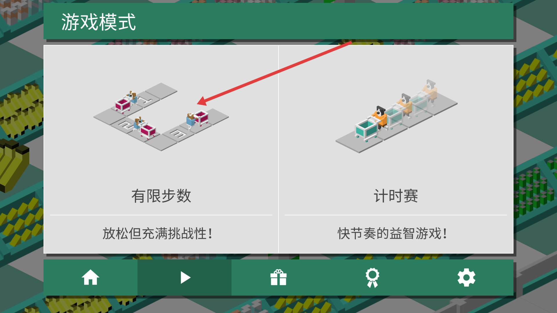 1、在游戲模式選擇界面,點(diǎn)擊【有限步數(shù)】模式,進(jìn)入該模式的游戲準(zhǔn)備界面。