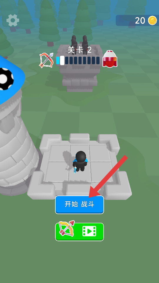 1、點(diǎn)擊【開(kāi)始戰(zhàn)斗】按鈕進(jìn)入關(guān)卡,準(zhǔn)備利用弓箭攻擊敵方塔樓。