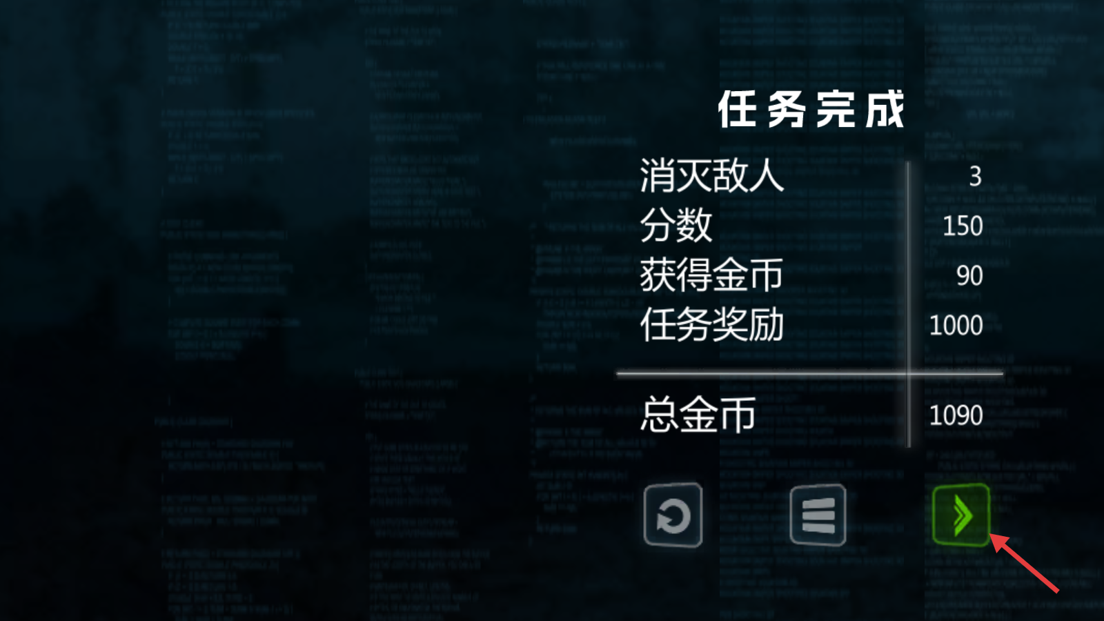 4、成功消滅所有敵人后,界面顯示【任務(wù)完成】,此時(shí)點(diǎn)擊右下角綠色箭頭按鈕,就能領(lǐng)取獎(jiǎng)勵(lì)并進(jìn)入下一段任務(wù)啦。