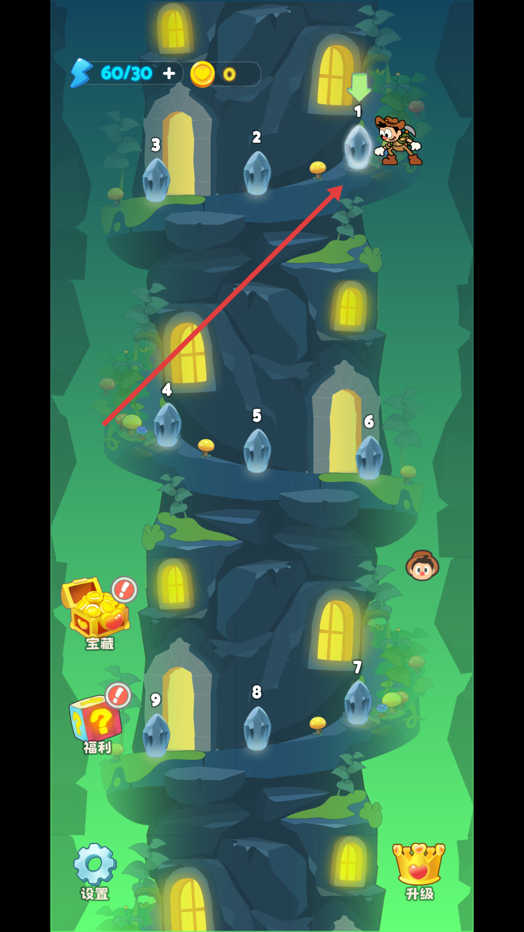 1、點(diǎn)擊塔樓處標(biāo)有【1】的關(guān)卡,進(jìn)入關(guān)卡選擇界面。