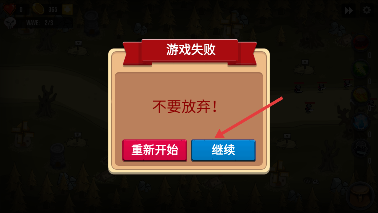4、若游戲失敗,可選擇重新開(kāi)始或繼續(xù),總結(jié)失敗經(jīng)驗(yàn),調(diào)整防御策略,再次挑戰(zhàn),提升塔防布局和技能使用技巧。