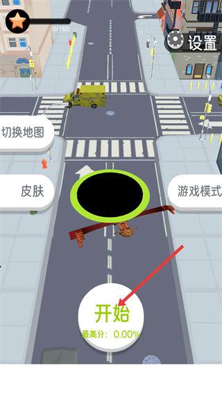 1、點擊【開始】按鈕,進入游戲,準(zhǔn)備操控黑洞在城市道路場景中行動。