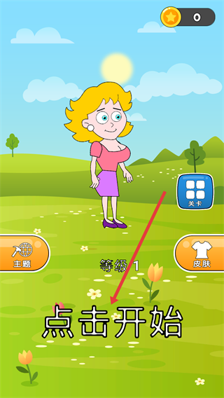 1、在游戲主界面,點擊【點擊開始】,進(jìn)入等級1的游戲場景,準(zhǔn)備開展冒險。
