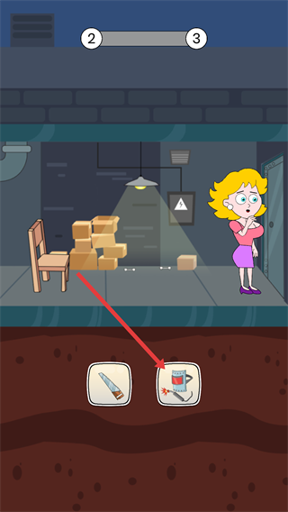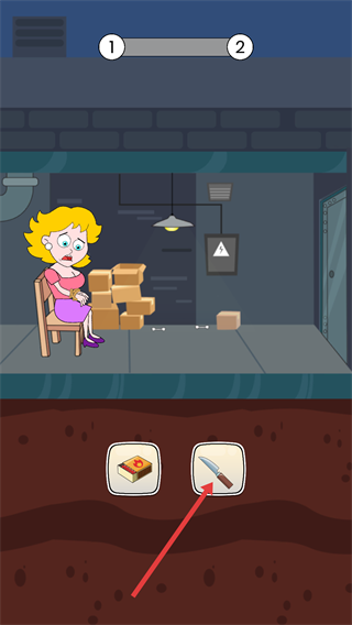 2、當(dāng)人物被綁時,選擇下方的【刀具】,用其幫助人物解除束縛,推進(jìn)劇情。