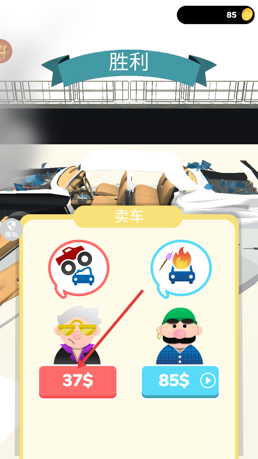 4、車輛處理完畢,可選擇以37$價格賣車。