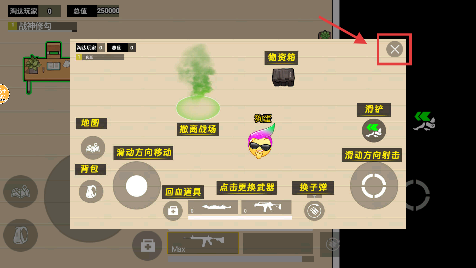 2、關(guān)閉操作指引界面,熟悉移動(dòng)、射擊、換武器等操作,為摸金戰(zhàn)斗做準(zhǔn)備。