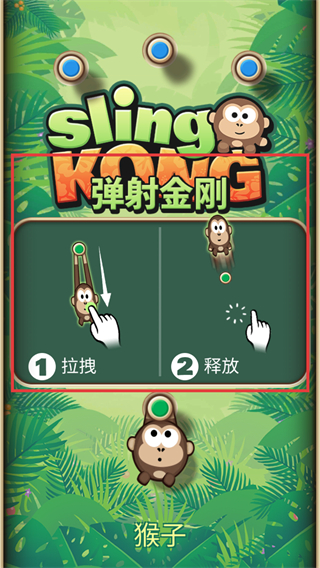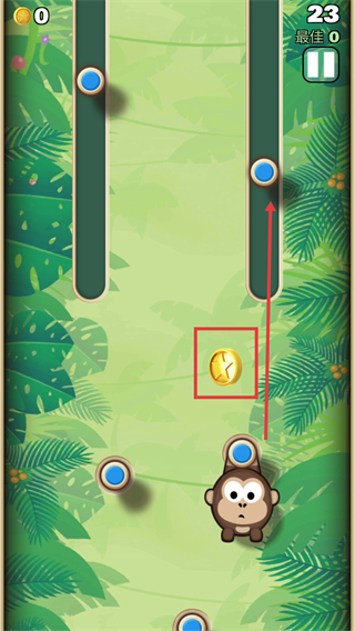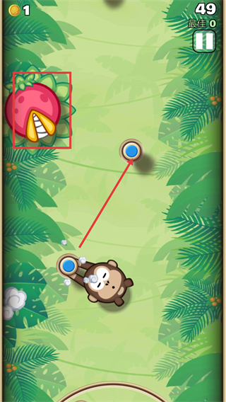 1、通過“拉拽”猴子,然后“釋放”,讓猴子彈射到藍色節(jié)點上,以此移動和得分。