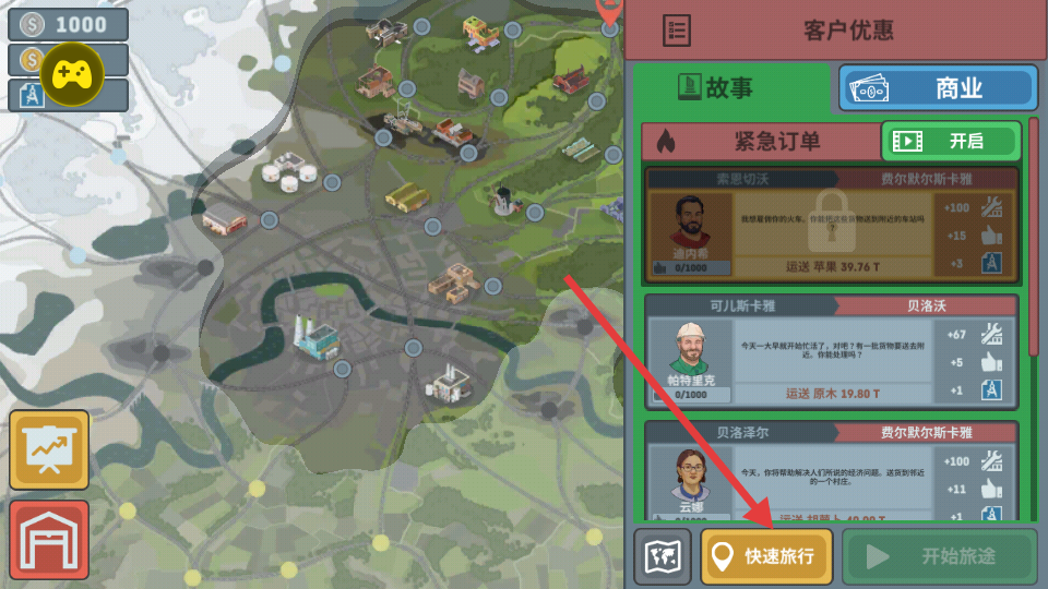2、地圖界面中,可選擇【快速旅行】功能,快速到達(dá)任務(wù)地點(diǎn),提升運(yùn)輸效率。