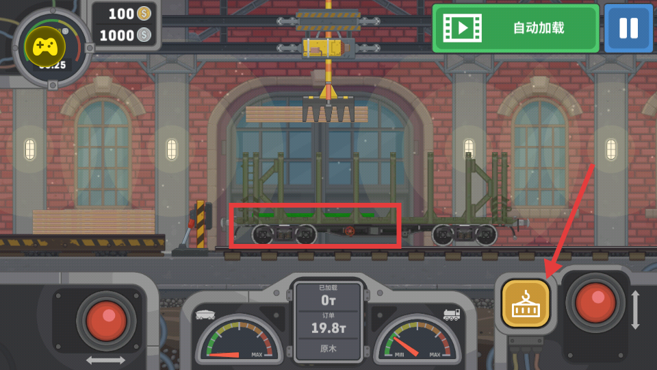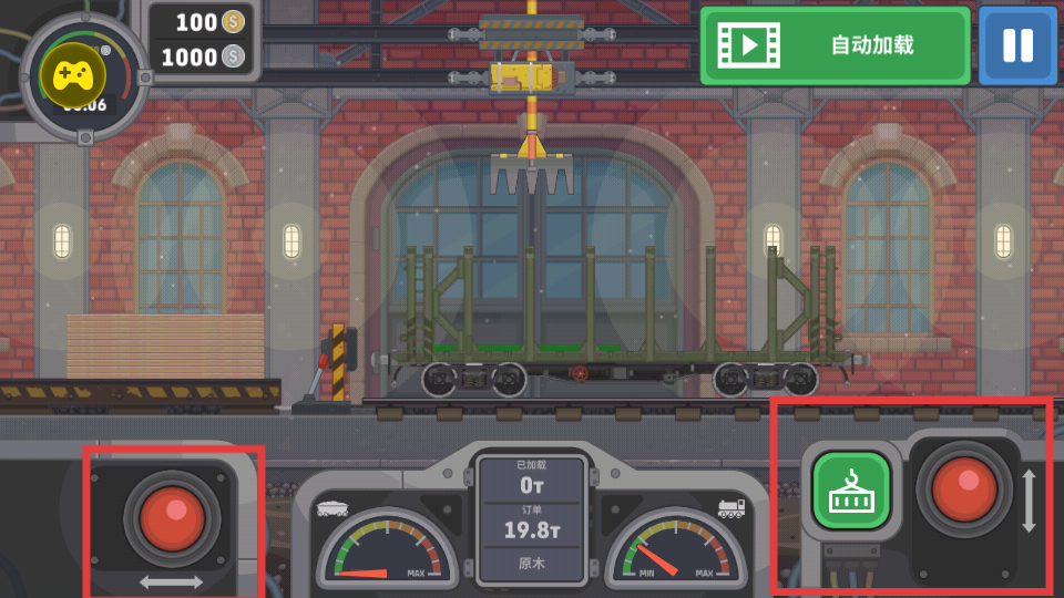 3、貨物裝卸環(huán)節(jié),利用左右操作按鈕和吊車按鈕,完成原木等貨物的裝卸工作,為運(yùn)輸做好準(zhǔn)備。