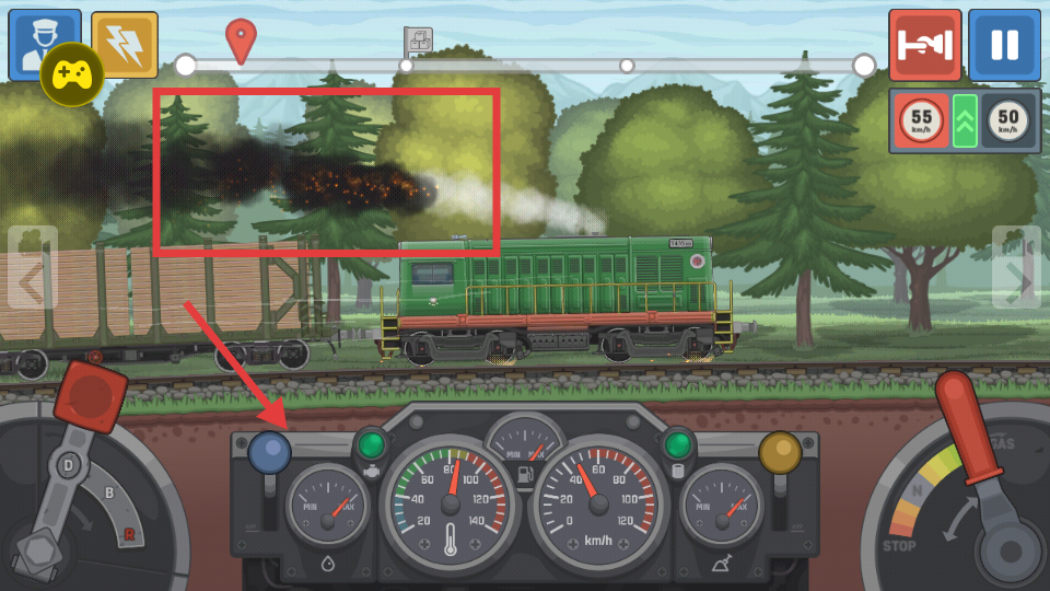 3、行駛過程中關(guān)注火車狀態(tài),若有火花等異常,調(diào)整相關(guān)操作按鈕,確?;疖嚢踩旭?。
