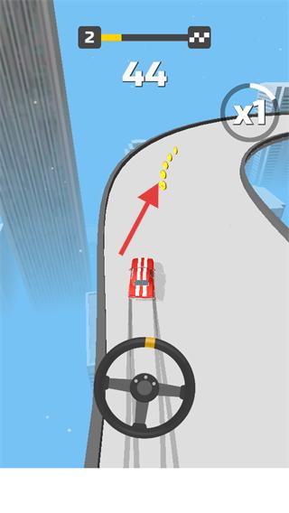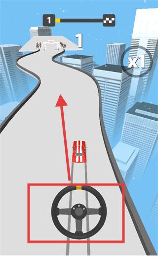 2、游戲中通過(guò)方向盤(pán)操控賽車移動(dòng),沿著箭頭指示方向前進(jìn),精準(zhǔn)控制賽車行駛路線,提升行駛穩(wěn)定性。
