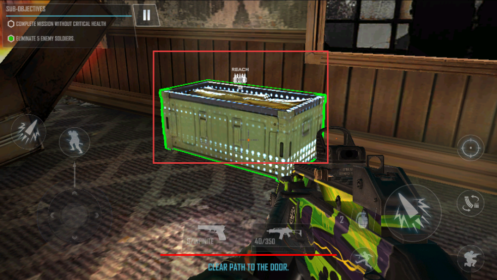 3、找到標(biāo)有【REACH】的綠色寶箱并靠近,清理通往門口的路徑,為完成任務(wù)創(chuàng)造條件。
