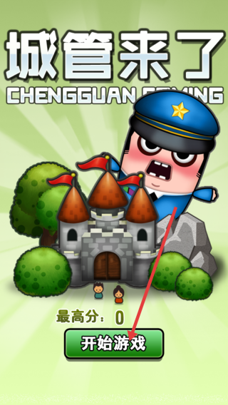 1、進(jìn)入【城管來了-CHENGGUAN-COMING】游戲,點(diǎn)擊【開始游戲】按鈕,開啟游戲挑戰(zhàn)。
