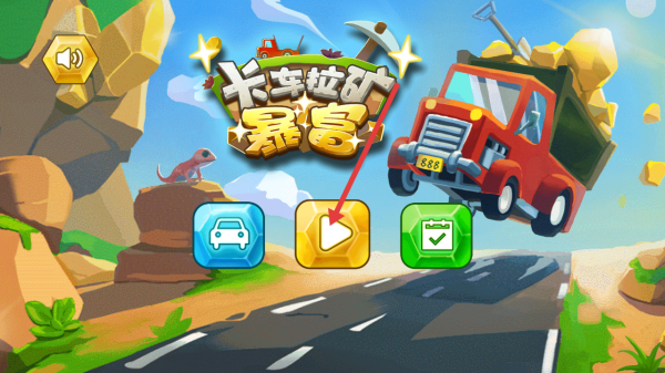 1、進(jìn)入【卡車?yán)V暴富】游戲,點(diǎn)擊黃色播放按鈕,開始游戲挑戰(zhàn)。