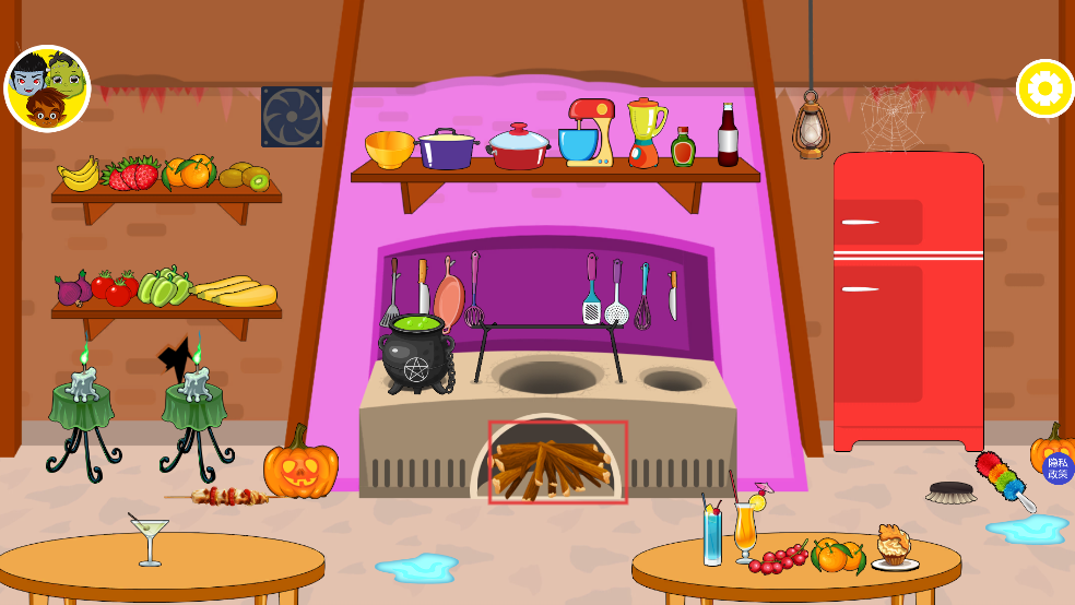 3、在廚房區(qū)域找到【木柴】,將其放入爐灶,為后續(xù)烹飪或觸發(fā)機(jī)關(guān)做準(zhǔn)備,同時留意周圍的食材和廚具。