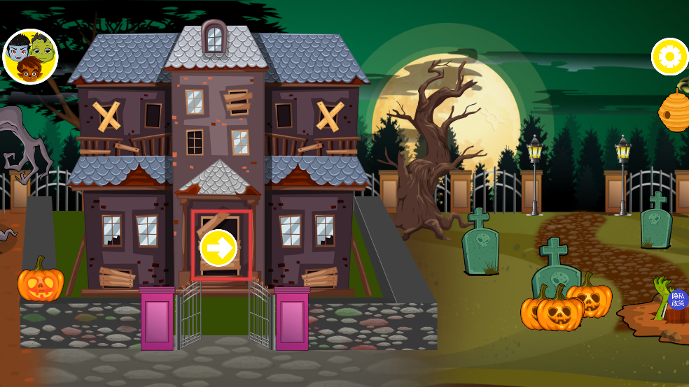 2、進(jìn)入鬼屋后,點(diǎn)擊門口帶箭頭的標(biāo)識,深入屋內(nèi)探索,每一處場景都可能有新的任務(wù)觸發(fā)。