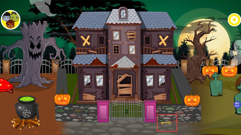 1、在鬼屋前找到【鑰匙】,用它打開大門,開啟鬼屋探險之旅,注意周圍萬圣節(jié)元素里的隱藏線索。