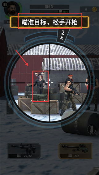 1、瞄準(zhǔn)目標(biāo)后松手開槍,精準(zhǔn)打擊敵人,優(yōu)先消滅高威脅目標(biāo),提升戰(zhàn)斗效率。