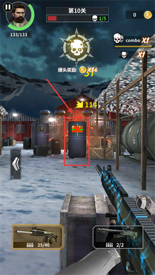 2、瞄準(zhǔn)敵人關(guān)鍵部位,爭取爆頭獲取高額獎勵,提升戰(zhàn)斗收益,高效完成第10關(guān)。