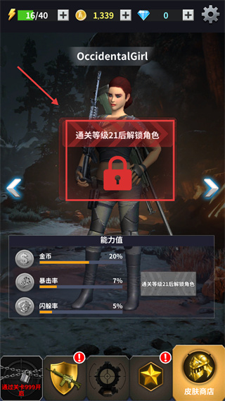 3、努力通關(guān)等級21,解鎖新角色OccidentalGirl,利用其屬性提升戰(zhàn)力,拓展游戲體驗。