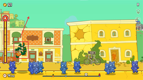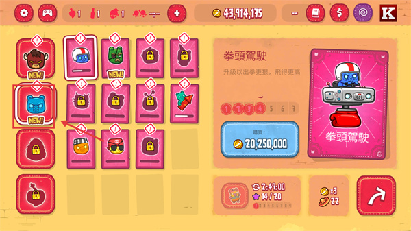 1、解鎖新角色和道具,如藍(lán)色熊角色,消耗金幣升級(jí)“拳頭駕駛”等道具,提升彈射能力和收益。