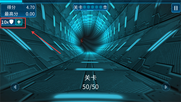 2、利用盾牌道具保護(hù)自身,在科幻隧道場景中躲避障礙,提升得分。