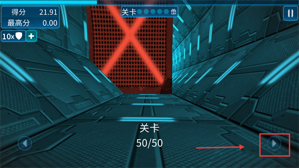 3、點(diǎn)擊右側(cè)前進(jìn)按鈕,控制移動(dòng)方向,避開紅色障礙,順利通過關(guān)卡。