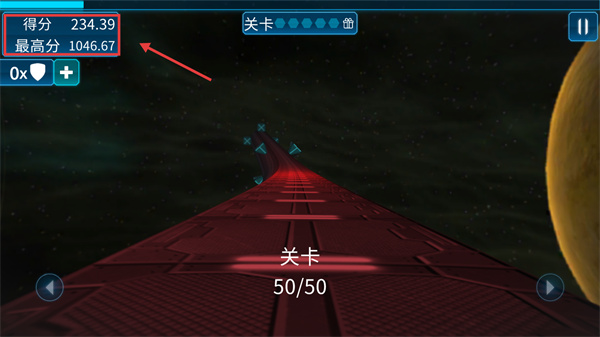 1、關(guān)注得分和最高分,在科幻場景中不斷挑戰(zhàn),爭取突破最高分記錄,提升游戲成就感。