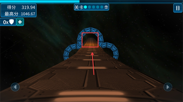 4、專注于通道正前方,平穩(wěn)移動,穿過藍(lán)色幾何障礙,爭取更高表現(xiàn)和關(guān)卡進(jìn)度。