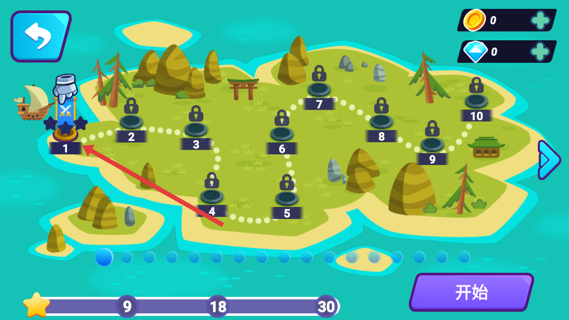 1、點擊【點擊開始戰(zhàn)斗】按鈕,進入游戲關(guān)卡選擇界面。