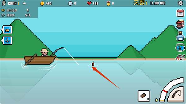 3、在釣魚場景中,當魚鉤有動靜時及時操作,可成功釣到魚,這是積累水族館魚類的關鍵步驟。