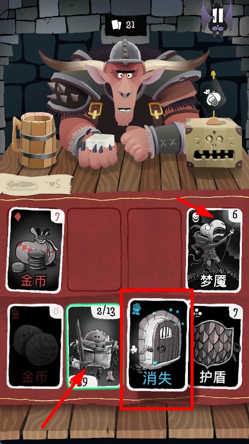 3、遇【夢(mèng)魘】時(shí)用【消失】卡牌規(guī)避攻擊,【護(hù)盾】減傷,收集【金幣】,配合【機(jī)器人】卡牌輸出。