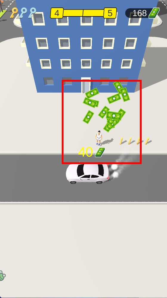 3、駕駛至終點(diǎn)時(shí)將行人安全送達(dá),靠近【鈔票】區(qū)域,收集散落的【綠色】-【鈔票】,獲得【40】分的收益,積累財(cái)富。