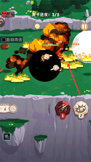 1、戰(zhàn)斗中點擊技能圖標可釋放對應技能,如紅色技能圖標可對敵人造成范圍傷害。