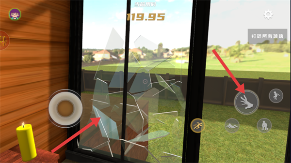 4、靠近玻璃后,使用工具點擊玻璃可將其打碎,完成打碎所有玻璃的任務(wù)。
