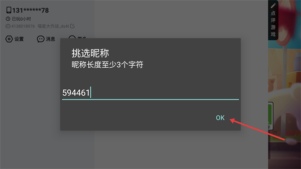 1、進(jìn)入游戲后,首先挑選昵稱(長度至少3個(gè)字符),點(diǎn)擊“OK”完成命名,開啟游戲之旅。