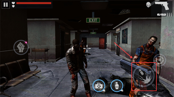 2、戰(zhàn)斗中點(diǎn)擊射擊按鈕,精準(zhǔn)打擊僵尸,減少其數(shù)量,保障自身安全。