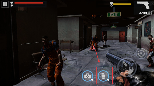 3、面對(duì)多個(gè)僵尸時(shí),使用手榴彈,造成范圍傷害,快速清理僵尸群。